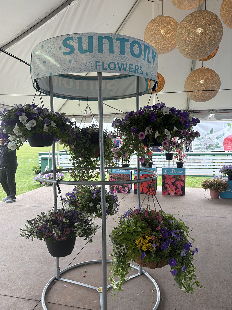 Suntory rounded out its display with its mixed hanging baskets.