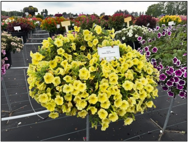 The light yellow blooms of ‘Capella Hello Sunshine’ created the look of the summer in trial gardens. Perfect on its own or for creating sunny combos, this petunia showed off its performance across North America. Hello Sunshine, like the other 23 colors in the Capella series, blooms early and offers excellent performance in propagation and its ability to create a tidy pot with minimal PGR use.
